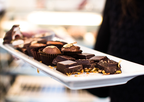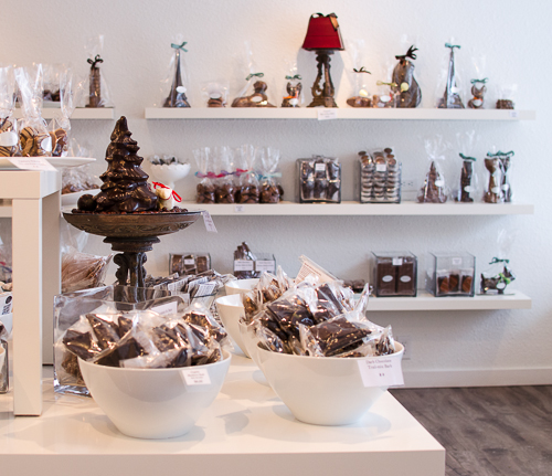 Walking into the Chocolatier Constance Popp shop, you’re greeted with a smile and offered samples of the latest chocolate creations. The minimalist décor, clean white walls, and shelves perfectly lined with truffles, bark, and bars make it clear that you’re entering an exquisite, upscale chocolate universe.