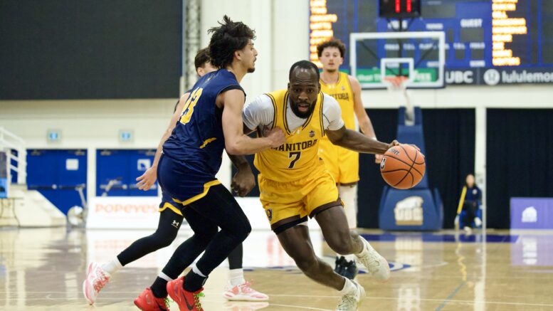 The Bisons men’s basketball team defeated the Brandon University Bobcats 79-68 in the Canada West play-in round on Thursday, Feb. 12. The game was hosted by the University of British Columbia (UBC).
