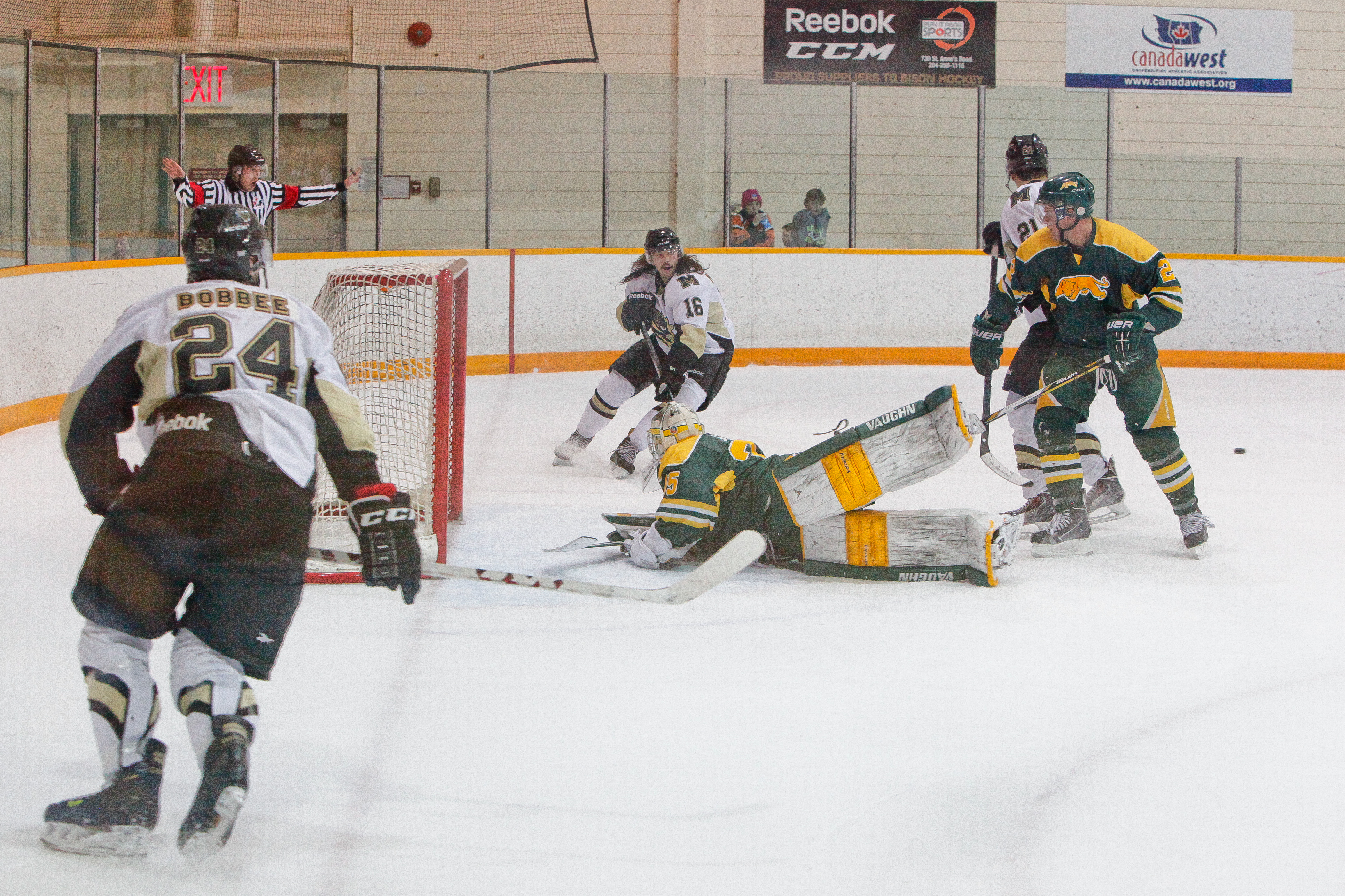 The start of Saturday’s game played out very similarly to the night prior, with Manitoba outshooting Regina 10-5 and garnering a multitude of scoring chances. Unfortunately, the post was the Bisons’ enemy, ensuring a parallel score of 0-0.